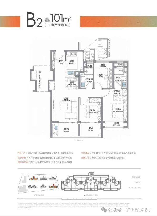 建面约89㎡3房户型:东边套主卧配置约270°双向采光飘窗、S墙设计,主力总价仅约450万级,首付约90万起!