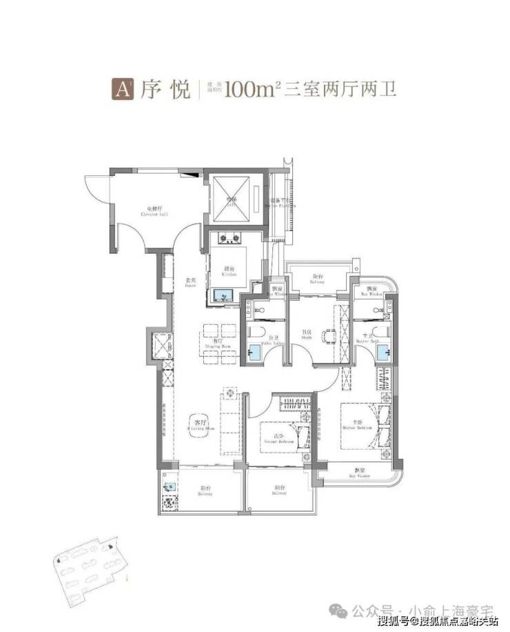 其中建面约115㎡鲲鹏阁三房户型是上海此前未见的全新王炸级产品