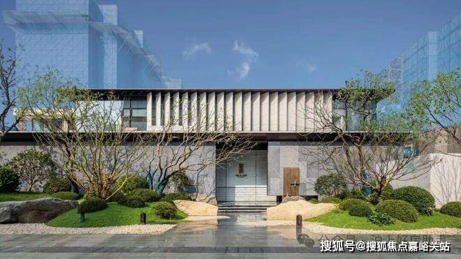 取意豫园中式园韵,打造约 99 米隐奢入口空间结合独立的车马院,风雨廊道与人车分流独立双入口,带来尊贵的归家体验。