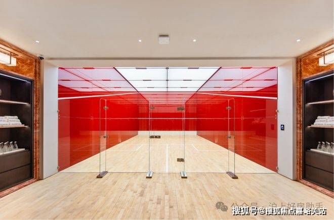其中壁球馆用鲜亮的米兰红石材作为背景,营造非常时尚的运动风。