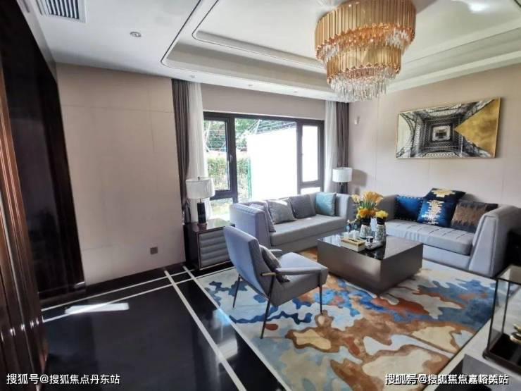 1、客厅虽然位于户型的北侧,但因有着庭院,外加南向有大面积落地窗,客厅也可以享受充足的采光功能,看似朝北的客厅,依旧朝南;