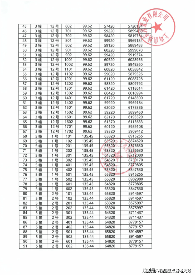 最新一房一价表: