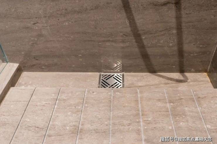 淋浴房地面做了拉槽和导水条,加速水流出,连地漏都要做个独特造型。
