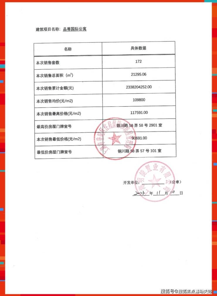 准售房源一房一价表