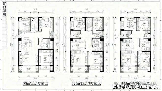 四、户型魔法:98-143㎡精装三/四房,得房率78%-83%的空间革命