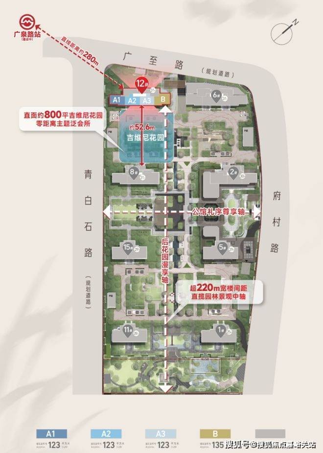 1、楼间距更开阔,离地铁更近:它的南北楼间距超过了52.6米,比首开的8号楼栋更宽敞。最关键的是,它几乎是离在建的20号线广泉路站最近的楼栋之一。