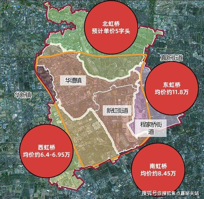 项目地处嘉定,位于北虹桥商务区,享大虹桥规划利好。而整个大虹桥范围里,新盘均价如下图示意: