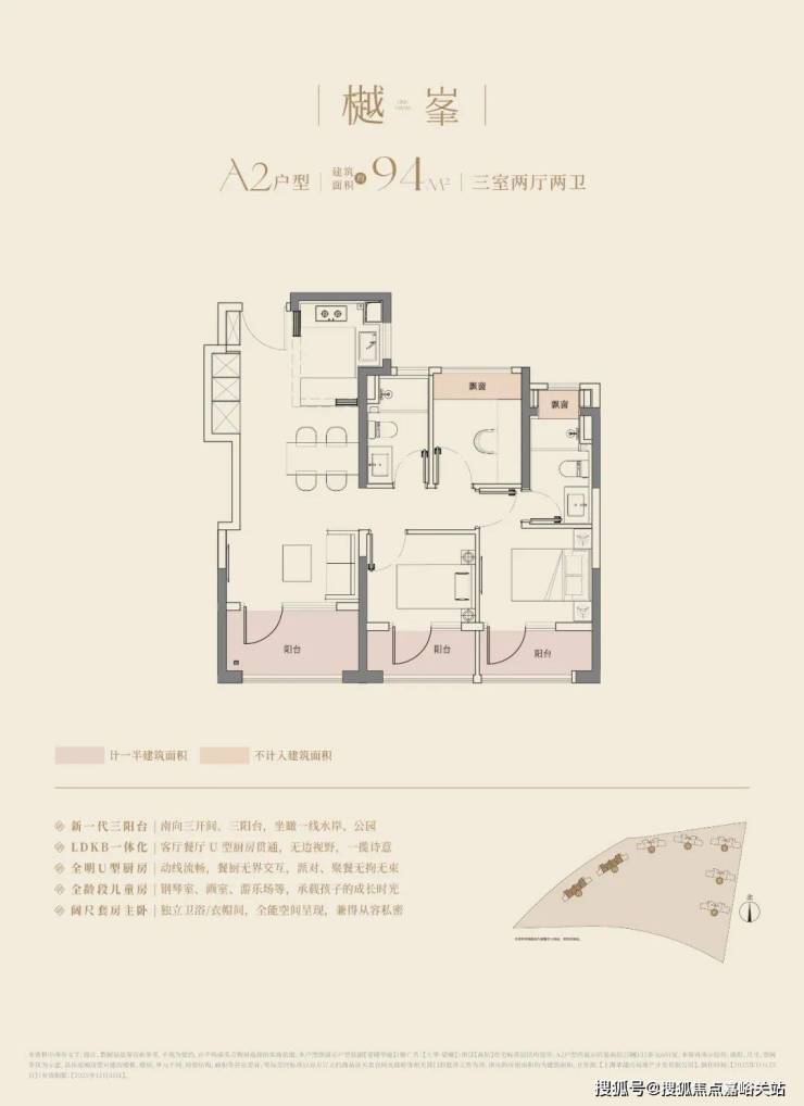 建面约94m3房2厅2卫