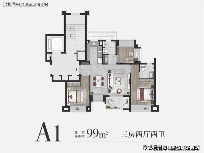 约99㎡3房2卫户型是上海市场中最主流的面积段之一,但项目的户型设计却超脱以往。