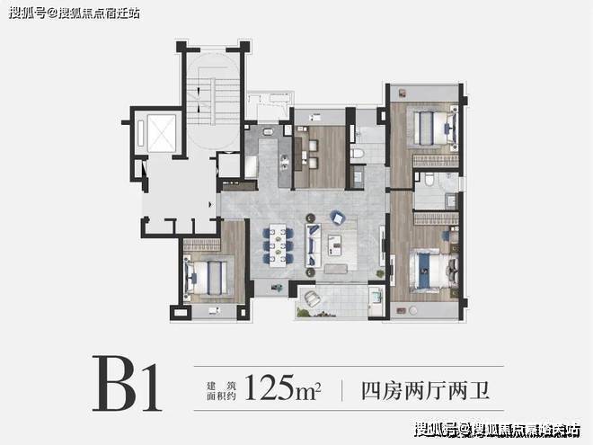 约125㎡4房2卫户型是约99㎡的升级版,四房更能保障业主的全生命周期需求。