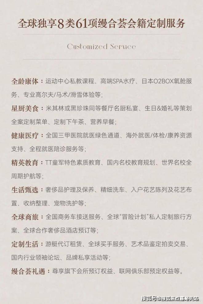 有社交、商务、运动、志趣、亲子5大主题,涵盖精致私宴、恒温泳池、健身房、儿童培训、风雅茶室、多功能厅等,古北99售楼处电话➡☎:400 - 8824 - 258【24小时预约快线】并链接8类61项全球顶级资源,从运动、教育、旅行、医疗等多维度,成就与世界的共叙、与时代的共鸣。