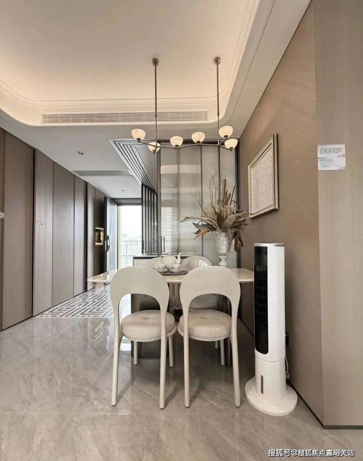 入户门厅以弧形悬浮顶棚为特色,为业主带来柔和温润的归家关怀,让归家的每一步都充满舒适与惬意。