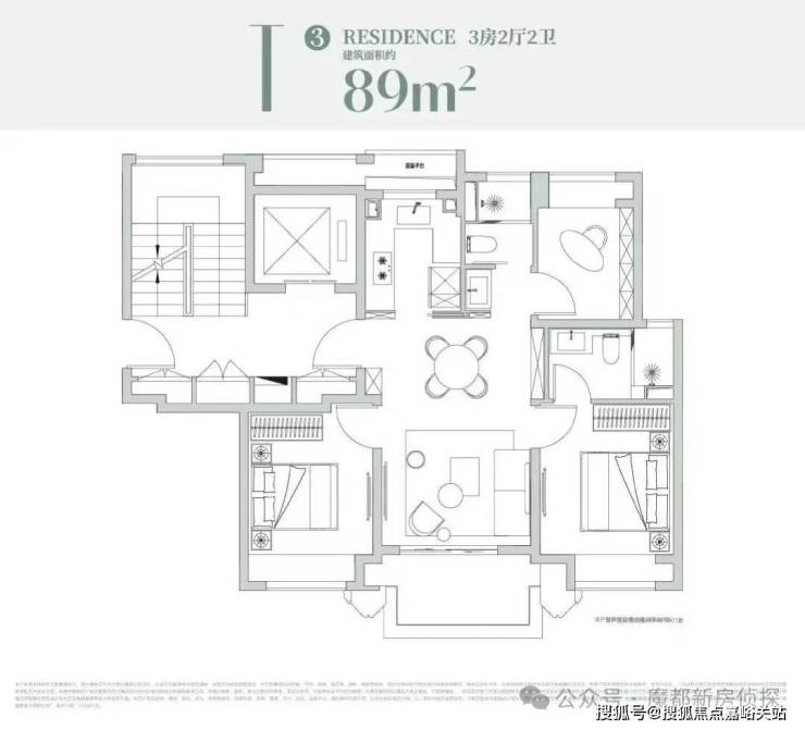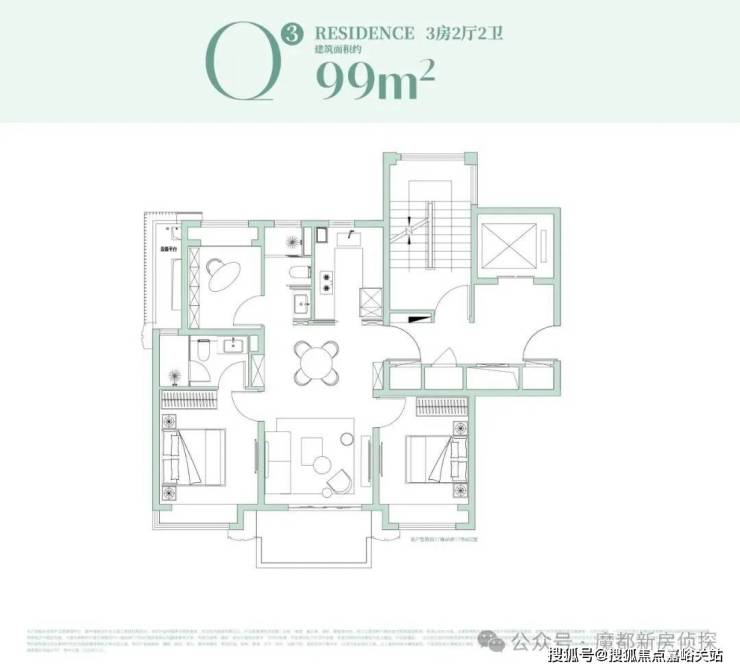 约99㎡户型设计:经典飞机户型格局!独立观景阳台!