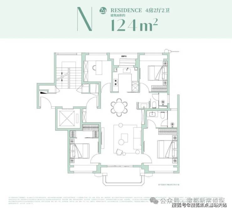 约153㎡户型设计:极致观景,西瞰江景,东瞰园景!4房功能齐备!
