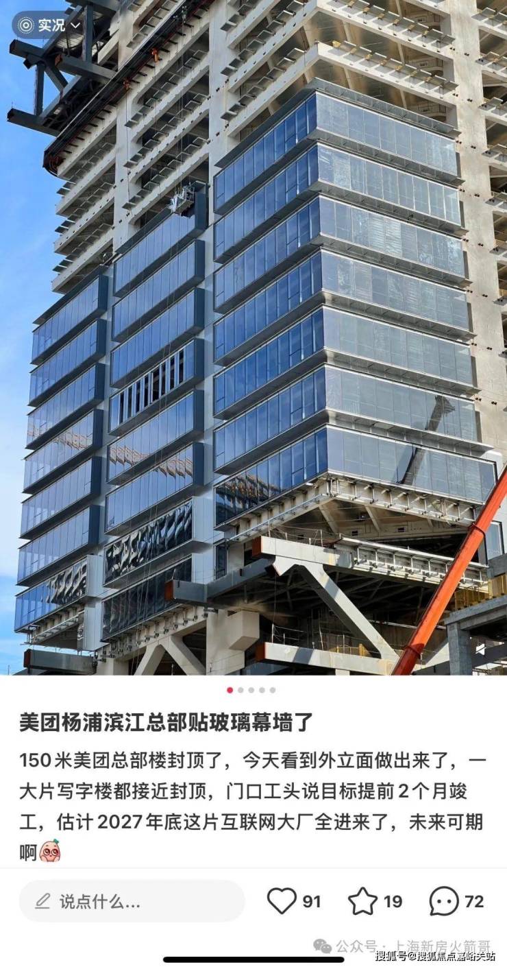 通过最新现场实拍,上海中建壹品外滩元境官方售楼处电话:400-118-5086√√√【已认证】美团150米总部大楼已经在铺设玻璃幕墙,小红书已经有博主实拍爆料: