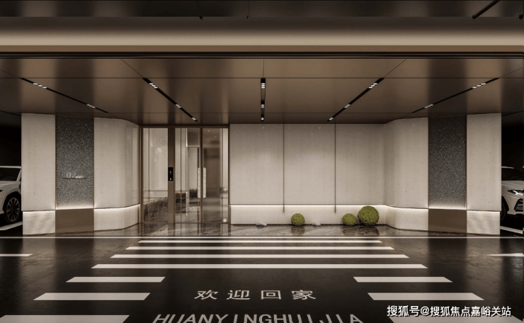住宅的地下车库以“光影、质感”为设计理念,将其打造成一个充满艺术气息和自然韵味的空间;