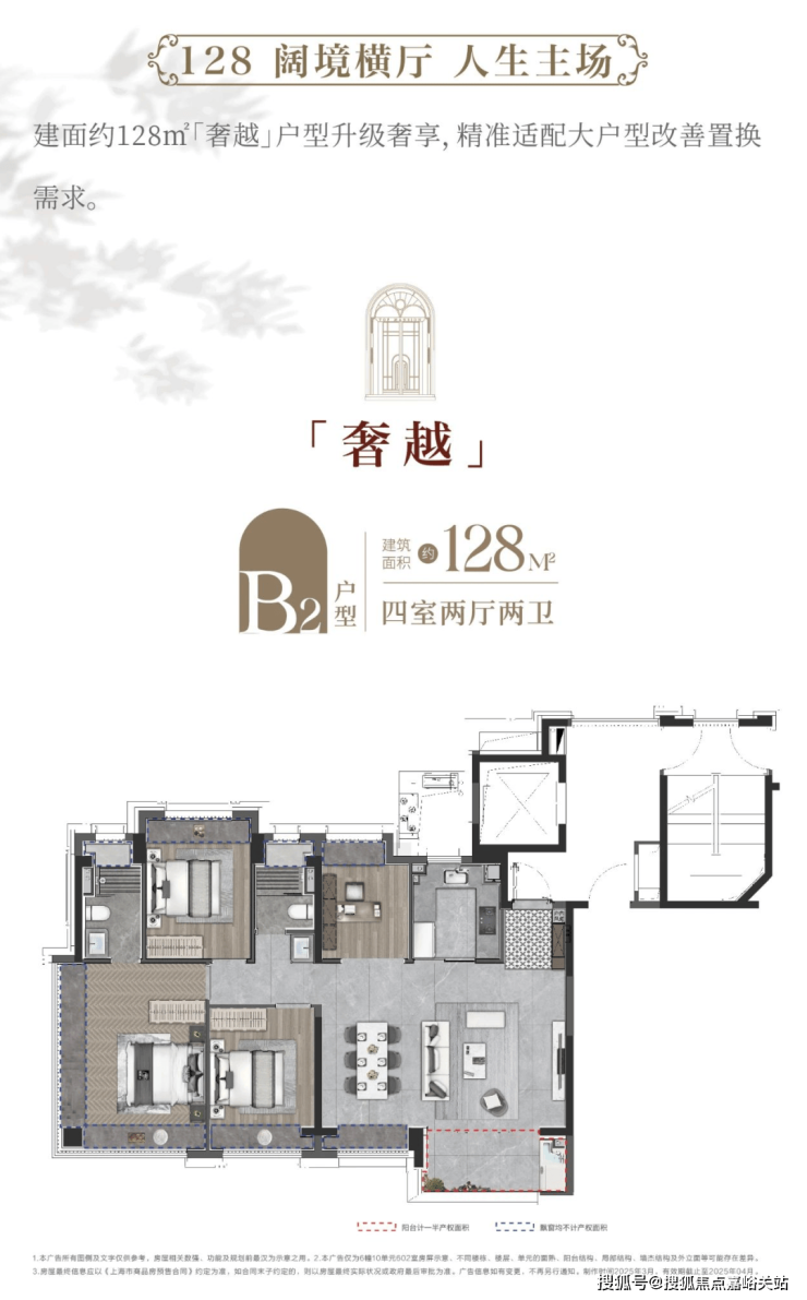 建面约128m「奢越」户型升级奢享,精准适配大户型改善置换需求。
