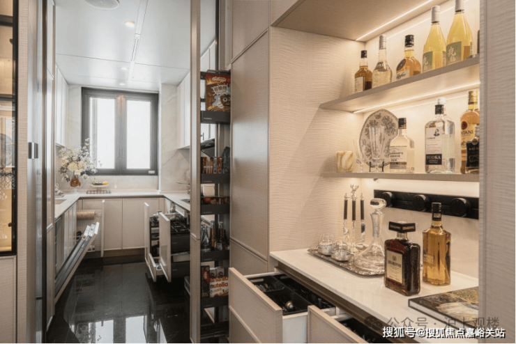 室内设置 大金中央空调、新风系统和地暖,搭配斯麦格冰箱,住起来特别舒服。厨房有 博世四件套洗碗机、蒸烤一体机、油烟机和灶台,做饭很方便。 全屋岩板铺装,既耐用又显档次。卫生间干湿分开,配了 高仪卫浴、智能马桶、暖风机,主卫还有浴缸和美妆冰箱,洗澡、化妆都很享受。