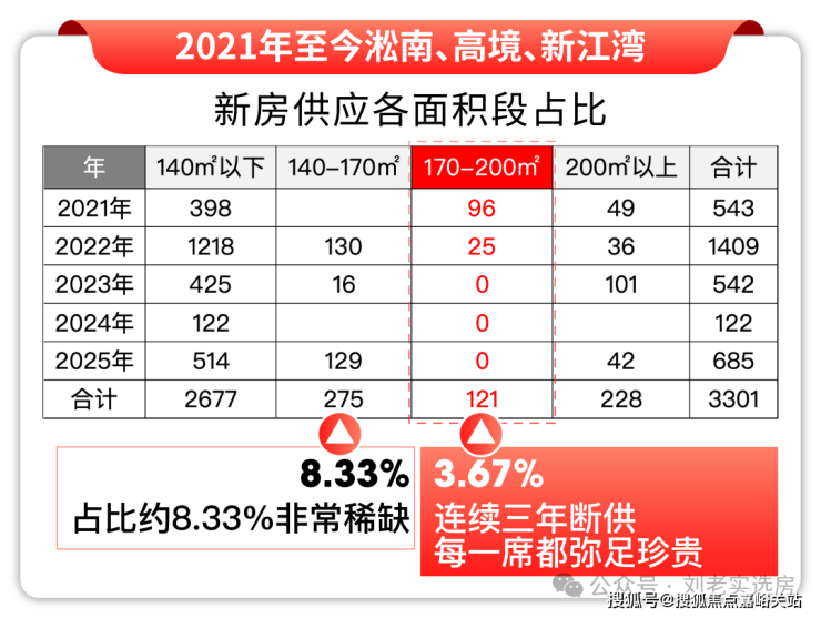 而这次江湾金茂府三期带来的压轴楼王 约190㎡终极改善大宅,更是区域内 连续3年断供,近5年供应占比仅约 3.67%的稀缺供应!