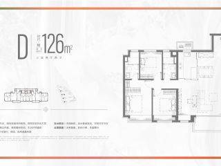 建面约 126㎡三房两厅两卫:大横厅设计,南向尺度感十足,可改造为灵动空间,增配蒸烤一体箱与美妆冰箱,进阶改善优选。