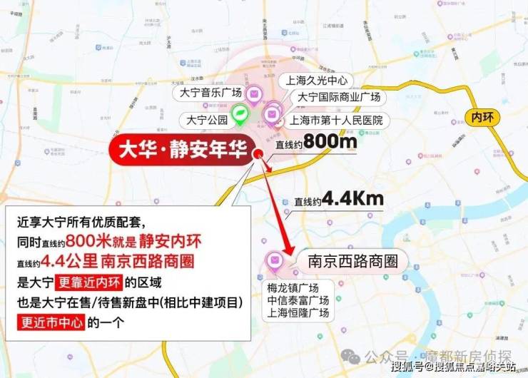 【大华·静安年华】 项目 可谓双王炸区位,直线800米贴脸静安内环, 一脚油门就能杀进上海城市动脉,畅达全市核心节点;约4.4公里直插静安寺-南京西路心脏,直接把全上海顶流的繁华,变成你家的「日常生活」。