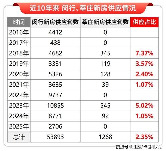 而身为开发更早、更成熟的城市副中心,莘庄的新房供应只有1268套,占比仅约2.35%
