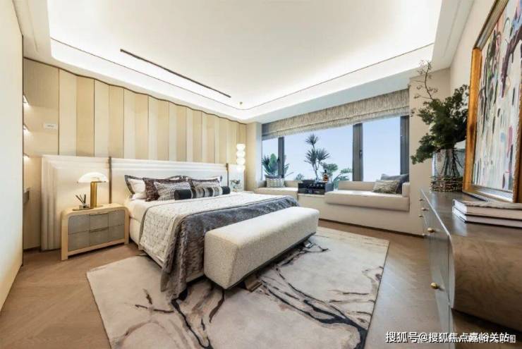 第三,主卧空间带双排步入式衣帽间,卫浴间更是标配双台盆、淋浴房、浴缸,妥妥豪宅级配置。