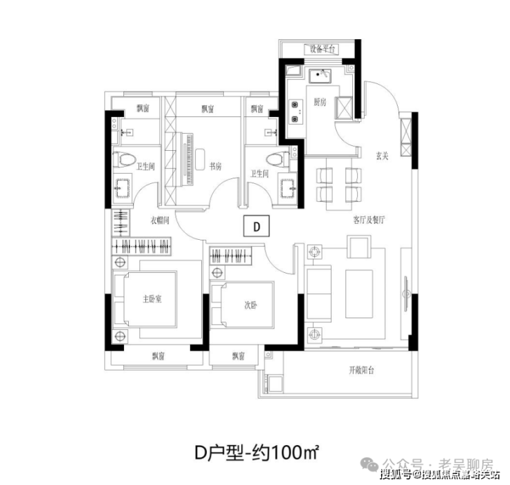 建面约100㎡3房2卫,阳光三房,同等面积更多功能;宽幅南向观景阳台,把居住变成风景;步入式衣帽间,给予生活更多从容。