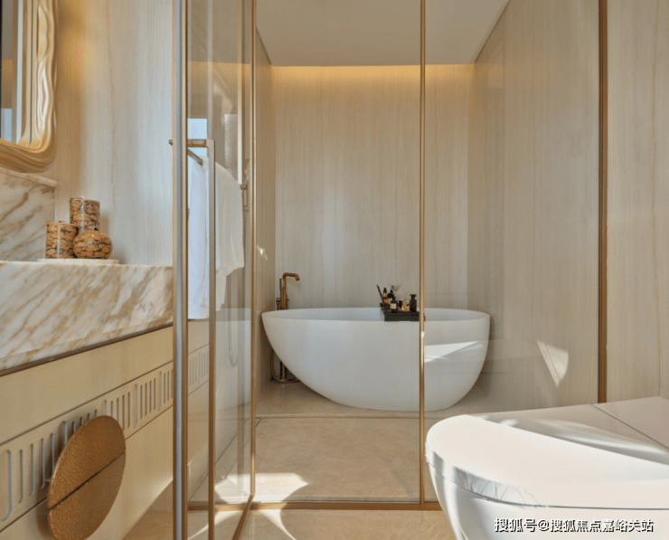 南向的主卫在顶豪市场不多见,并配双台盆+淋浴+浴缸+马桶豪华四件套。