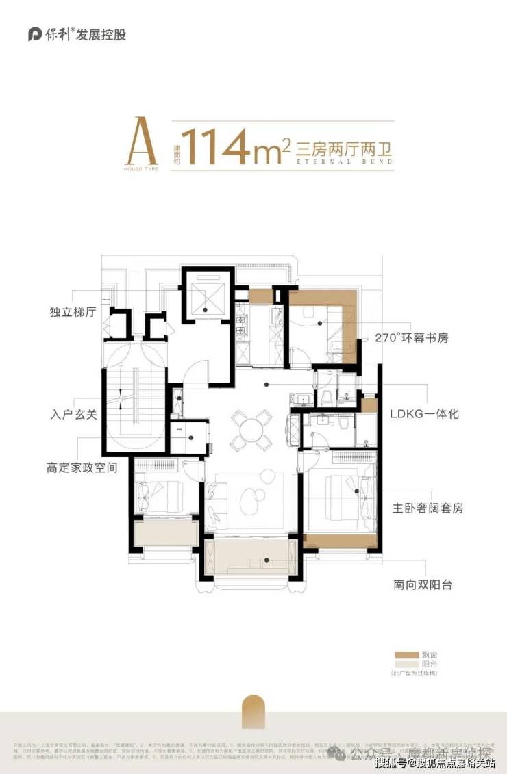 1、建面约114㎡赠送面积近约18㎡(含独立电梯厅),比肩约140㎡产品的实得率!