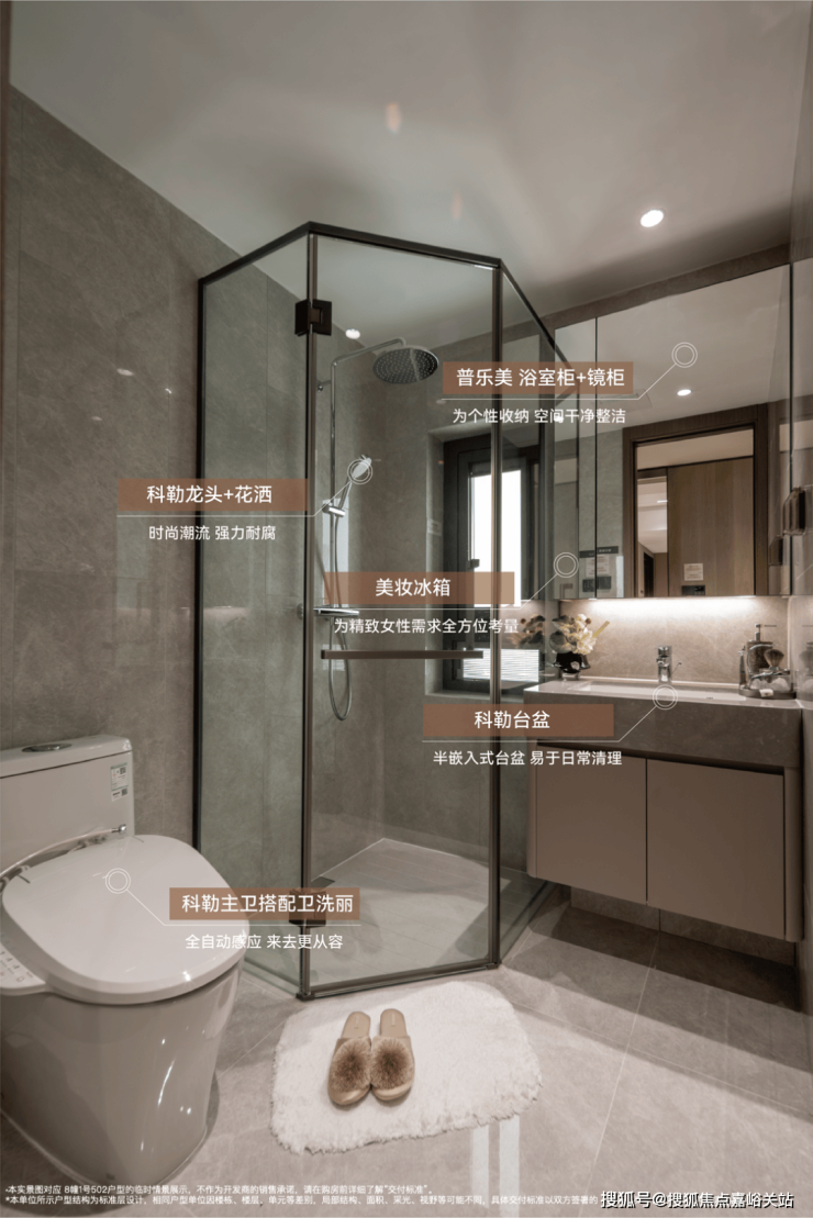 精奢品质— 美妆冰箱(主卫)、除臭精灵、主卫卫洗丽、净水器、360°抽拉龙头(厨房)等,予日常人性化关照;