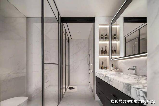 公卫打造独特的四分离系统,实现独立洗漱台、卫生间、淋浴间、洗衣区互不打扰,将酒店化体验引入住宅。