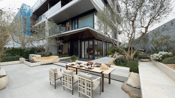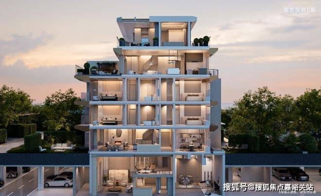 首先,项目以层层退台的流瀑五叠设计,把庭院从地面托举至云端,彻底终结 “上叠无院” 的历史。