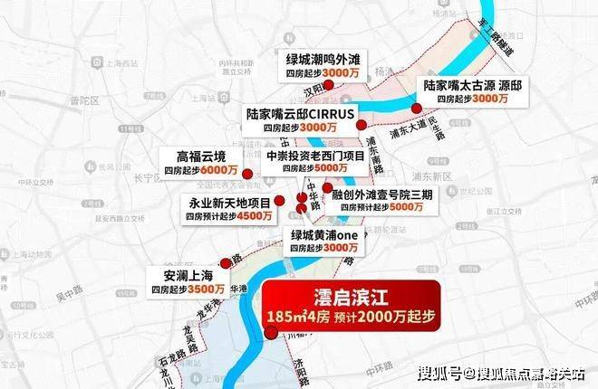 从预算入手,我统计了2000-2500万能享180㎡左右尺度的选项,基本都属于次一级地段,比如苏河湾后面的大宁,北外滩后面的四川北路,前滩后面的三林,陆家嘴后面的新杨思等。对于追求稳妥资产配置的客户来说,这样的地段显然是不够的!