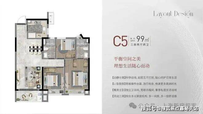 建面约99㎡3房2厅2卫,做到了三开间朝南+动静分离+南北通透+双卧室朝南+主卧套房设计+明厨明卫,室内通透明亮。大名城映雨江南售楼处电话4008569058☑️☑️