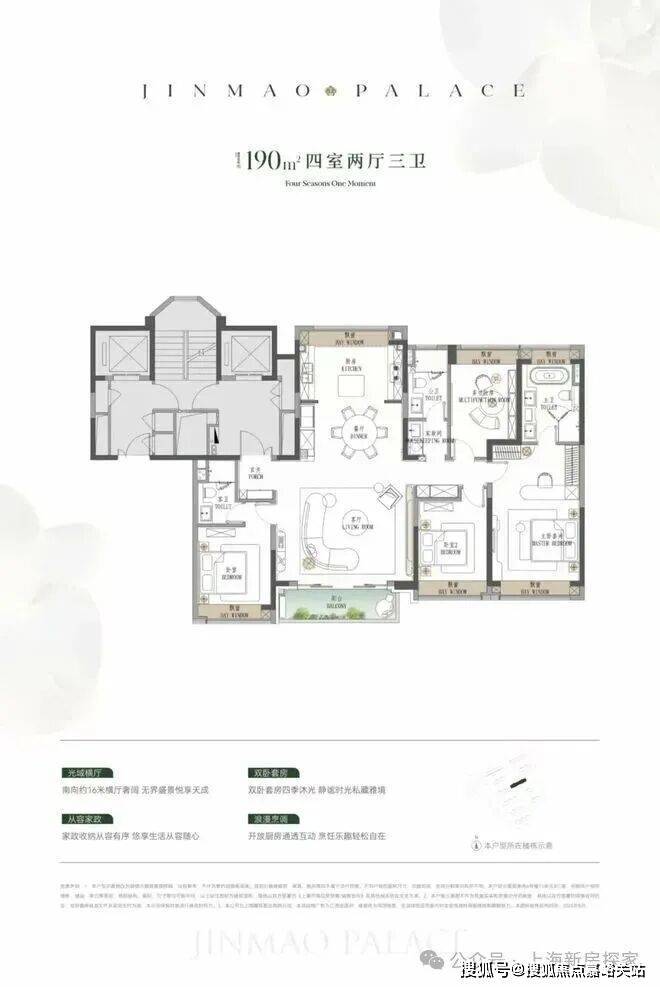 作为备受期待的压轴楼王产品-建面约190㎡科技大四房户型首发,府系四房+绿金科技+超配奢装,ta的面世必将成为豪宅天花板再次引爆楼市!江湾金茂府售楼处电话400-856-9058