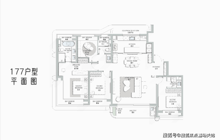 177㎡艺术贵雅奢邸是海上·清和玺压轴力作 ,延续玺系经典的设计理念和思路, 阔朗的四面大开间设计 ,客厅做到了 大横厅设计 ,延续了曲面流体的阳台,并赠送了独具特色的阳台迷你花园。