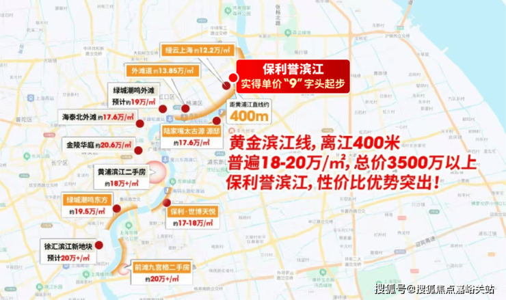 放眼整个滨江400米核心段,保利誉滨江大概率是卖一个少一个的“实得均价9字头、总价1200万起”的新房, 周边同类新房普遍18-20万/㎡ ,总价更是高达3500万起。