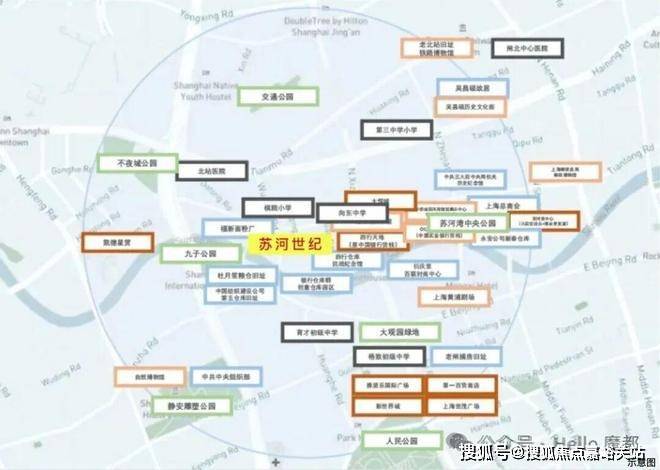 项目地处静安区苏河湾板块,曲阜西路与晋元路交汇处,南接苏州河,东邻爱国主义教育基地四行仓库。项目属于内环内核心区域,与南京东路及人广商圈直线距离约900米,8/12号线曲阜路地铁站距项目直线距离仅约200米,一公里内汇聚城市生活精萃。