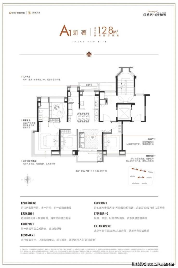 南向四大开间,精心铺排阔绰人生;X+1全龄空间,让家人各有其室,其乐融融;全屋7飘窗设计,赋予生活更多场景;主卧套房尊配衣帽间,时尚华服尽心收纳。