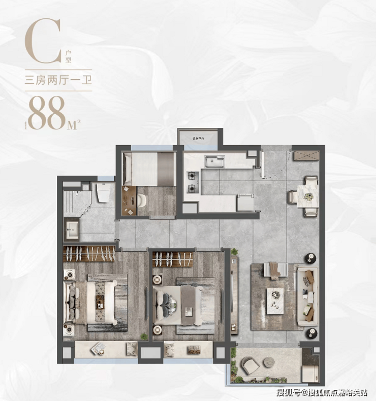 其中约88㎡和99㎡的3房在一期已经证明了自己的价值,市场认可度颇高。