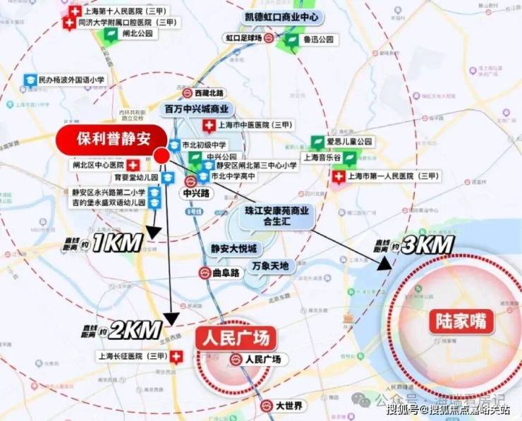 1公里范围内有静安大悦城、万象天地、凯德虹口商业中心、百万中兴城商业(在建中)、珠江安康苑的商业合生汇(在建中)等大型商场。
