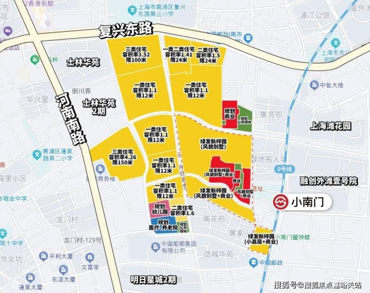 小高层主要位于右下角的260B-01地块,用地面积4750.3㎡,规划有小高层、商业、上海救火联合会遗址和火警钟楼及其他配套建筑。