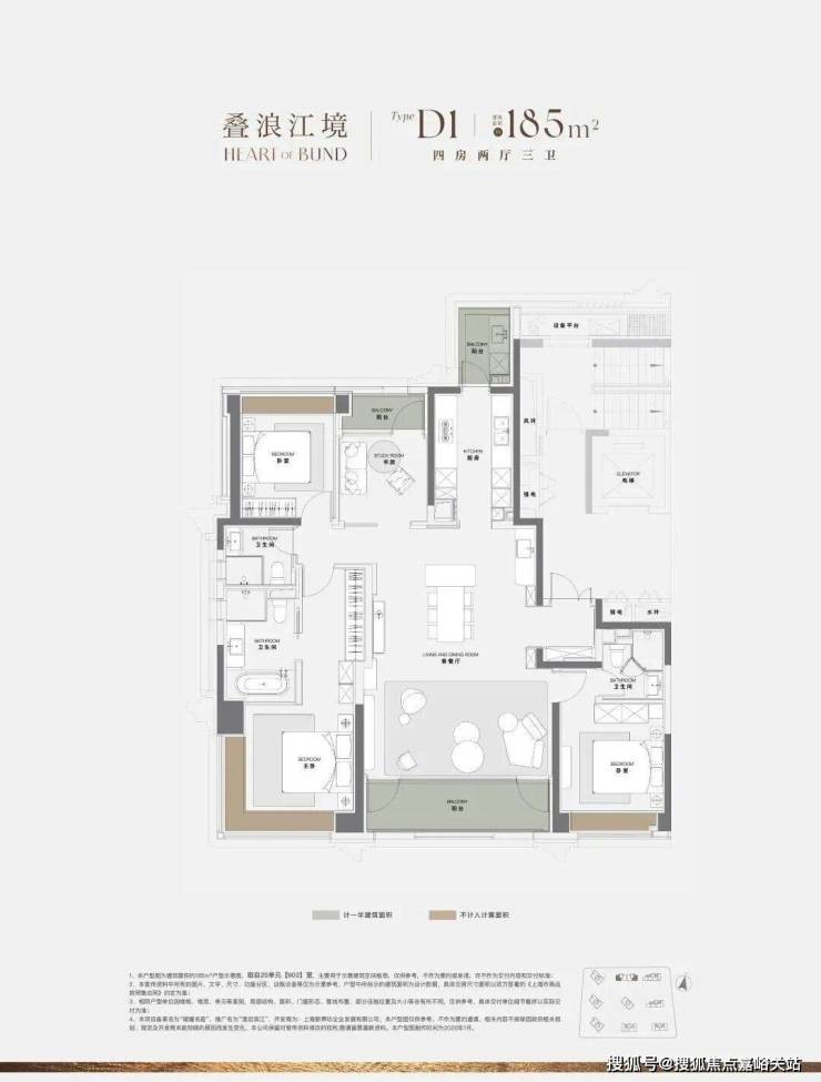 当然,作为一线滨江首个新规后作品,项目建面约185㎡户型的设计也是亮点满满。
