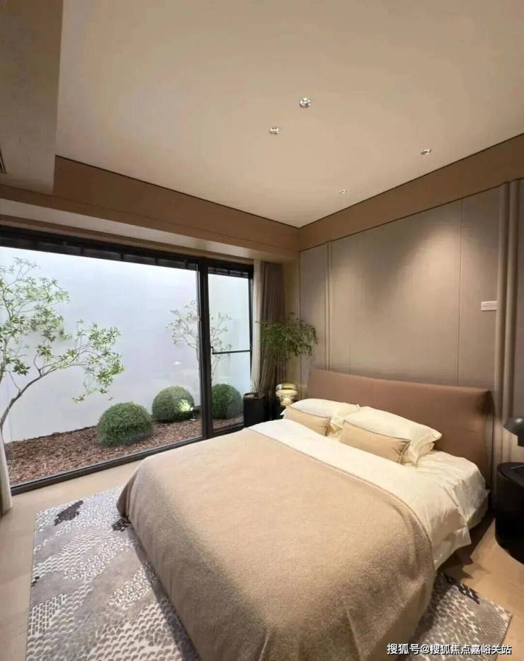 项目235新品户型方正规整,格局圆满;270°边厅设计,三面采光,五根结构柱的巧妙布局创造出极致的窗墙比与全落地玻璃幕墙,将中心园林的绿意与下沉庭院的景致最大化引入室内。