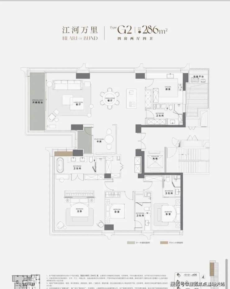 过去10年上海一线滨江住宅,大户型是绝对主流,120㎡级3房产品从未出现。澐启滨江是因2021年后滩九宫格有中小套型指标要求,得以推出120㎡级产品。