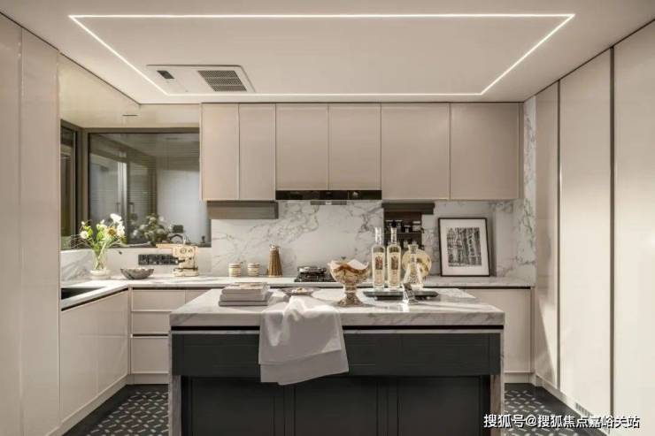 开放式厨房+岛台设计空间更通透! 转角抽屉收纳、下拉栏顶部设计反光镜避免视觉死角、轨道插座置于岛台侧墙不占台面空间等等,众多收纳细节思量到位,匠心独运! 外滩瑞府售楼处电话:400-8894-986VIPLINE24小时在线预约📞📞