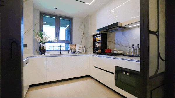 厨房配置丰富,甄选嘉格纳四件套(油烟机+燃气灶+洗碗机+蒸汽烤箱),满足多元化烹饪需求,做饭得心应手;洗锅时,弗兰卡可抽拉龙头能冲净锅沿油污,威乃达橱柜的分层收纳,让餐具、调料各归其位,找东西不用翻来翻去。