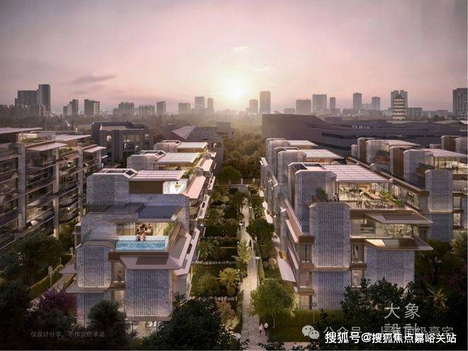 设计:建筑立面灵感源自大提琴优雅弧线,采用石材、防铜色铝板、不锈钢和曲面玻璃等材质,搭配穿插镂空、楔形线角等细节工艺。
