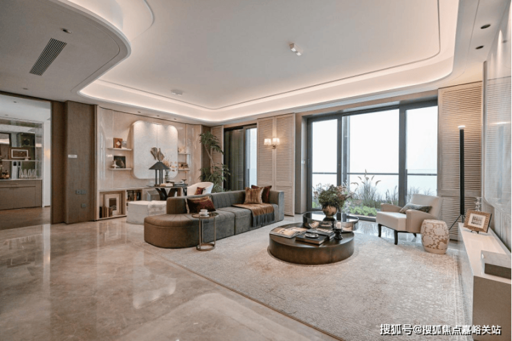 1、【巨幕景观客厅】最宽的客厅面宽约5.65m,和市面上180平左右的客厅面宽差不多。